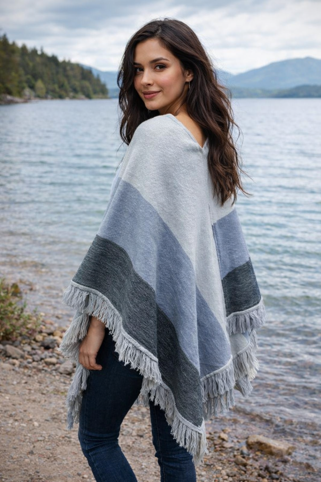 Ce poncho mode réversible en laine d’alpaga est chaud, pratique et confortable.